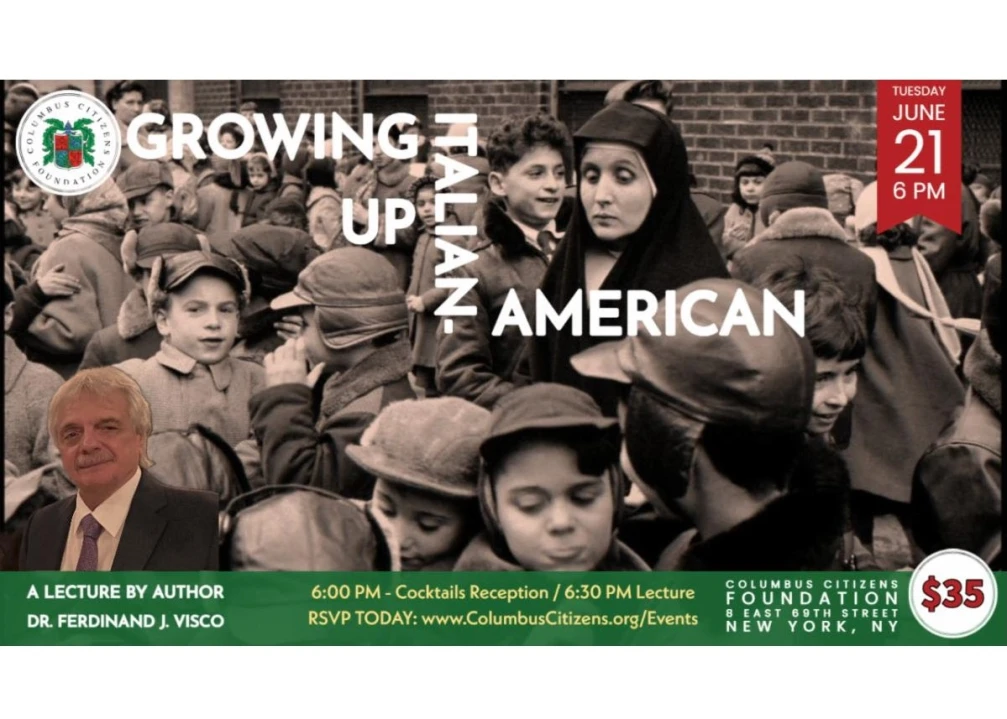 Tuesday, June 21, 6 pm. Columbus Citizens Foundation - 8 East 69th Street, New York, NY. RSVP TODAY. Join us as we welcome Dr. Ferdinand Visco to discuss his informative and highly entertaining book "Growing Up Italian American."
