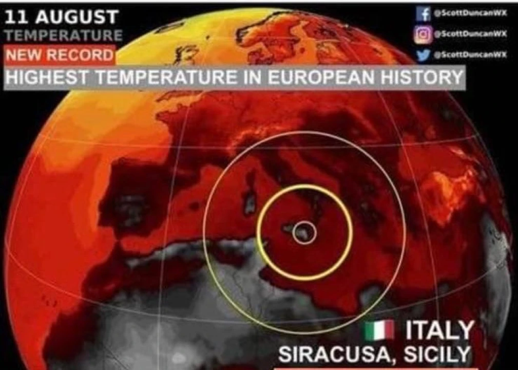 The temperature was measured at a monitoring station in Syracuse, Sicily, and confirmed soon after by the island’s meteorological authorities. The finding comes amid a fierce heatwave stretching across the Mediterranean to Tunisia and Algeria. Fires have blazed across much of the region for more than a week. Italy’s government has declared a state of emergency. Turkey and Greece have also been hit by devastating conflagrations.
