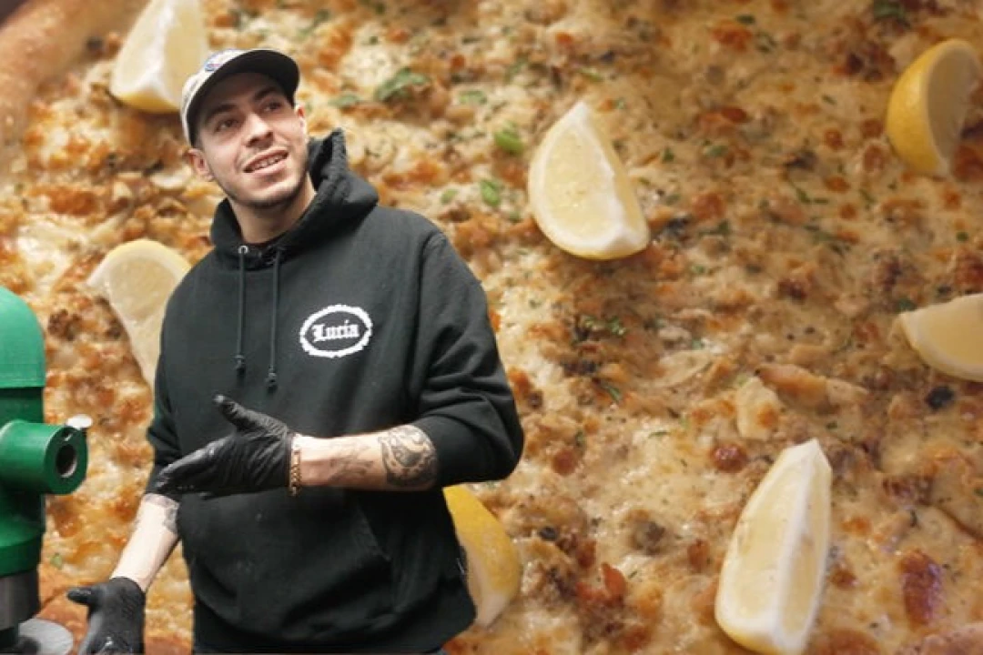 Salvatore Carlino, chef-owner of Brooklyn’s Lucia Pizza, did not have to look any further than his own upbringing when deciding what he wants his pizza joint to look like. Carlino’s parents were the owners of legendary pizza joint Papa Leone’s: “It’s kind of like having professional athletes for parents, then you decide that you wanna play that sport.”