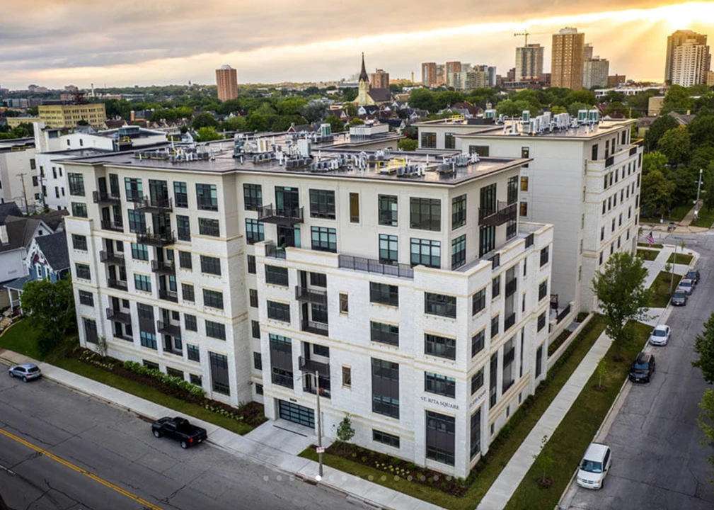The site included a long-vacant school and convent, and Capri was able to acquire the land for the project from the Archdiocese of Milwaukee for $1. In return, Capri built a new church adjacent to St. Rita’s Square, which it then sold to the archdiocese for $1. The financing mechanism took concerns about rising land costs off the table, and allowed Capri to reallocate capital to the construction of the community and the church.
