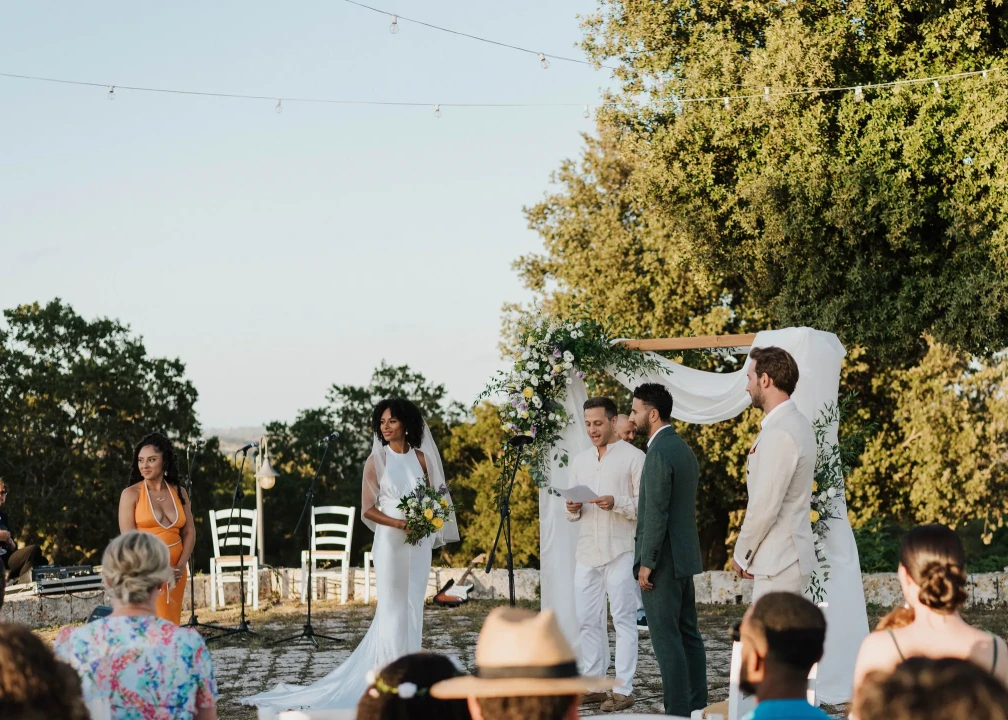 Charlotte and Emilio Stavrou’s wedding in Puglia, southern Italy, is the very picture of a picture-perfect destination wedding. Think long tables in a rustic courtyard, surrounded by trulli, dressed with local flowers and festooned with fairy lights. Of course, nothing is ever quite what it seems – more on the truth behind these dreamy, pared-back weddings below – and planning a wedding is challenging, sure, but oh-so-rewarding.