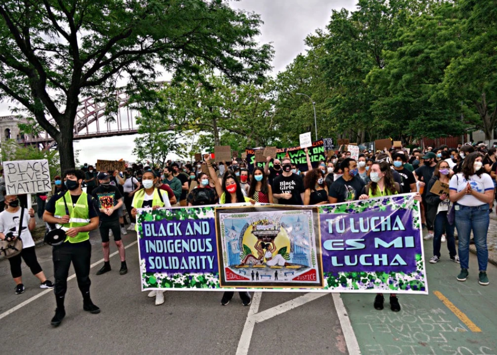 More than a hundred people marched toward Astoria Boulevard on June 17 to denounce the Christopher Columbus statue as a “symbol of genocide” and demand for it to be removed. The protest, organized by Queens-based group Justice for George Queens, began at Astoria Park’s War Memorial.