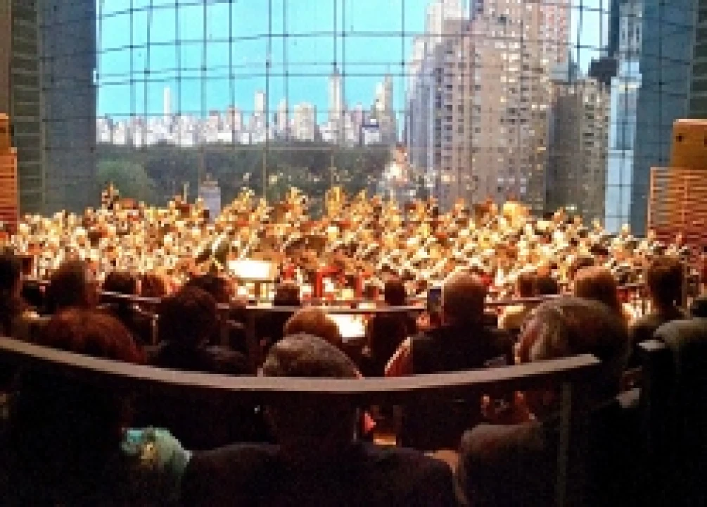 Dalla enorme vetrata della Apple room del Jazz Theatre al Licoln Center si può ammirare il sole tramontare su Central Park in una New York immersa nel traffico. A completare questa visuale magnifica, regalo per tutto il pubblico presente in sala, fa il suo ingresso il Corpo Bandistico Militare Italiano, 95 carabinieri in alta uniforme, accompagnati dal maestro Massimo Martinelli.
