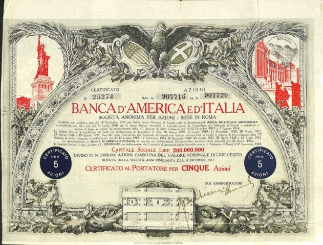 Nel 1919 la Bank of Italy di Giannini acquistò la Banca dell’Italia Meridionale, poi ribattezzata nel 1922 Banca d’America e d’Italia. Nel 1932 sosteneva il 15% delle esportazioni italiane verso gli Stati Uniti e nel secondo dopoguerra divenne la banca di riferimento per la ricostruzione del Paese, gestendo il 20% dei proventi del Piano Marshall, introducendo il credito al consumo anche in Italia e aiutando il Paese a riprendersi nel dopoguerra.