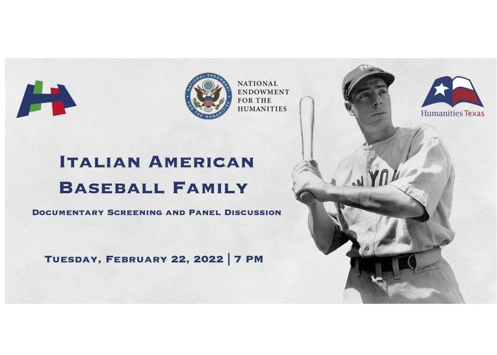 Wednesday February 22 2022 at 7 PM CST. ICCC Houston, 1101 Milford St, Houston, Texas. Italian American Baseball Family - Award-winning documentary screening with producer Roberto Angotti followed by panel discussion. Join us to meet the producer of the award-winning documentary Italian American Baseball Family, which won the Russo Brothers Italian American Film Forum Award at the NIAF 42nd Anniversary Gala in Washington, DC in 2018.