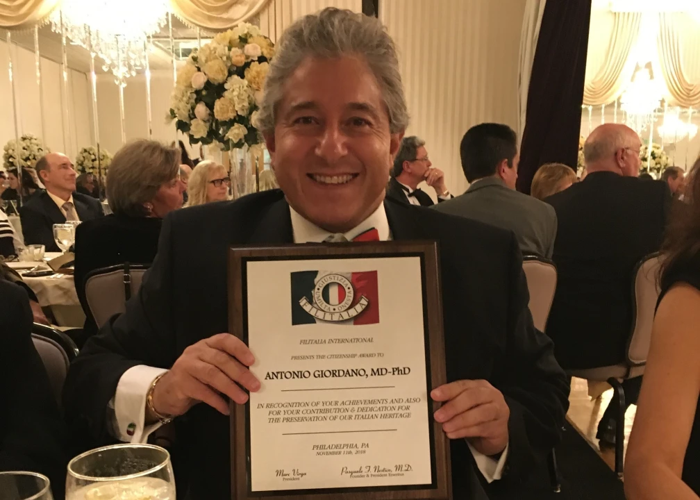 Italian-American Foundation, Filitalia, honors Antonio Giordano, MD, PhD, Founder & President of Sbarro Health Research Organization at Temple University with the Humanitarian award at the foundation’s 31st Anniversary Gala. Filitalia International & Foundation celebrates 31 years of commitment, dedication and service at their Annual Gala Dinner on Sunday, November 11, 2018. The foundation and its donors have contributed to initiatives championed by the Italian American community in the Greater Philadelphia area, among them the opening of the History of Italian Immigration Museum in 2014.