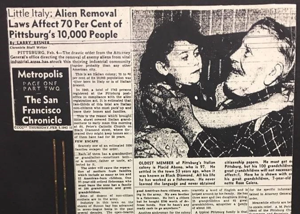 Italian American Heritage Month: A sensitive item that hit right here at home was the Italian “Enemy Alien” Relocation in 1942 at the onset of WWII. Many of our ancestors that emigrated from the old country and did not become naturalized citizens (such as my great grandmother in Monterey) were required to vacate their homes if in close proximity to sensitive military assets such as the Steel Mill and of course Camp Stoneman.