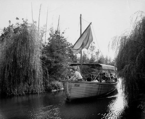 Freedomland’s guest parking lot was located north of today’s Bartow Avenue. As an attendant, Michael Barretti initially directed and parked vehicles. He then “graduated” to driving the trams to transport guests to and from the lot to the park entrance. Barretti also worked the toll gate, including the free pass lane where celebrities and acts entered the park. Eventually, he learned to operate a Freedomland tugboat.