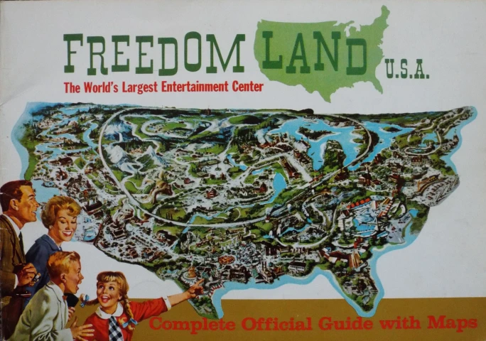 Freedomland U.S.A. provided unique family entertainment focused on specific periods of American history. Created as a movie backlot by several hundred artists and designers who were associated with other parks, Hollywood and Broadway, Freedomland featured the story of America through attractions located in its seven themed areas.