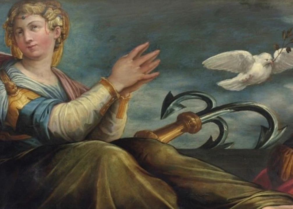Giorgio Vasari is commonly associated with Tuscany and Rome where he carried out many papal commissions, but two very important trips took him out of this direction: the trip to Venice in 1541 and the one to Naples in 1544. In the lagoon city Vasari was the guest of Pietro Aretino, his countryman who helped him obtain a prestigious commission, namely the decoration of the ceiling in the palace of Giovanni Corner. The iconography was that of the triumph of the Virtues with Charity surrounded by Faith, Justice, Hope and Patience in the center, accompanied by other figures on whose identity Vasari himself remains vague. Each panel, however, presented a similar approach: in the center, the personification of Virtue flanked by two figures, one of which was an example of that Virtue, the other expressed an opposite concept. The ceiling was dismantled and the parts that made it up dispersed: over time, some panels were found, thus giving the possibility to reconstruct, even if only virtually, the entire iconographic program, thanks also to the precision with which Vasari described the nine panels.