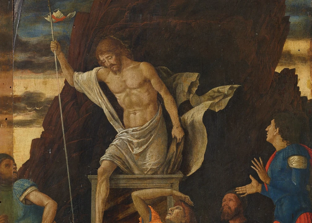Recent studies, however, have confirmed the authorship of the work, made around 1492-93, linking it to the fate of another masterpiece by Andrea Mantegna: the “Descent into Limbo” of 1492, preserved in Princeton in the collection of Barbara Piasecka Johnson. Observing the small cross on the lower edge of the panel depicting the Resurrection of Christ, to be precise under the stone arch, scholars have noted that the cross had to find a continuation in a missing portion of the painting. It has been established that the lower half of the Resurrection is the “Descent into Limbo”, auctioned at Sotheby's in 2003 for $30 million and kept at Princeton in Barbara Piasecka Johnson's collection. The Resurrection, on the other hand, was purchased in 1842 by Count Lochis for 24 gold coins and only today do we know to be two parts of a single painting.