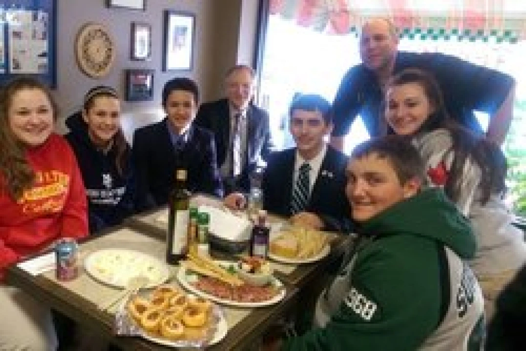Students were then treated to prosciutto di Parma, Parmiggiano Reggiano with Balsamic vinegar, rice balls and the mozzarella -made moments before, with extra virgin olive oil from Sicily, and cannoli. "Being able to see food such as mozzarella being made before their eyes, helps bring the Italian culture beyond the textbooks. It is an experience they will never forget," said club adviser, Marc Mariani.