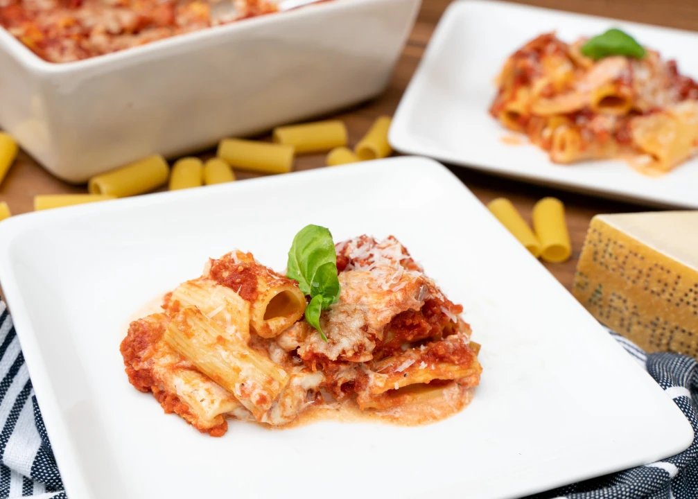 VARY IT! You can use just one of the sauces in larger amounts, or swap out the rigatoni for ziti or penne, if you like in this filling dish. Some people like to layer their baked pasta dishes with vegetables or sliced hard-boiled eggs as well.