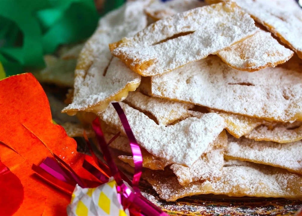 In Italy, Carnevale is the most colorful and playful period of the year before the Lenten season. It is celebrated with costumes, festive parades, allegoric floats, coriandoli (paper confetti), stelle filanti (paper streamers), and delicious sweet treats such as Chiacchiere.