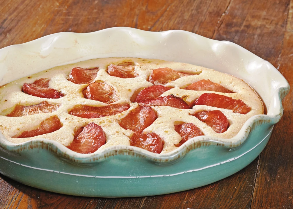 Pour the batter into the prepared tart pan and level the surface. Arrange the plums or other fruit in a circle pattern on top of the batter. Sprinkle the remaining tablespoon (13 g) of sugar on top of the fruit.