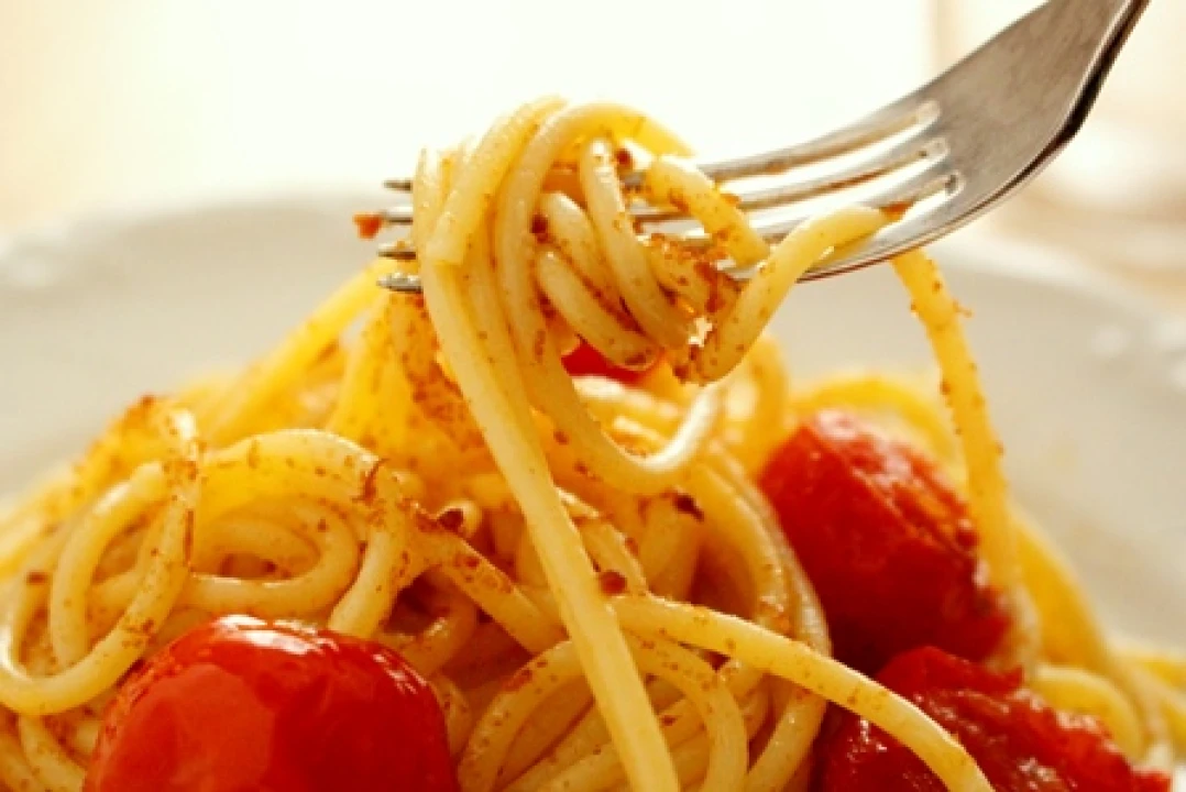 Spaghetti with bottarga (cured roe) and cherry tomatoes is a staple of the Sardinian cuisine, a tasty and nutritious first course. The addition of tomatoes give a special flavor and, why not, a touch of color; we eat with our eyes too! This is a typical fishermen' dish, very rich in protein. The roe (the mass of fish eggs) of the female fish (grey mullet or tuna) is extracted carefully so that its enclosing membrane is not ruptured. The roe is then dried and cured in sea salt.