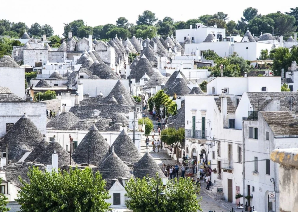 The trulli, the characteristic cone-roofed houses of Alberobello, Apulia, make up one of the 49 UNESCO World Heritage Sites in Italy. The name derives from the late Greek word for dome (τρούλος; in Italian, cupola), and refers to the ancient stone houses with conical roofs, constructed with the abundant limestone from the plateau of Apulia’s Murge zone.