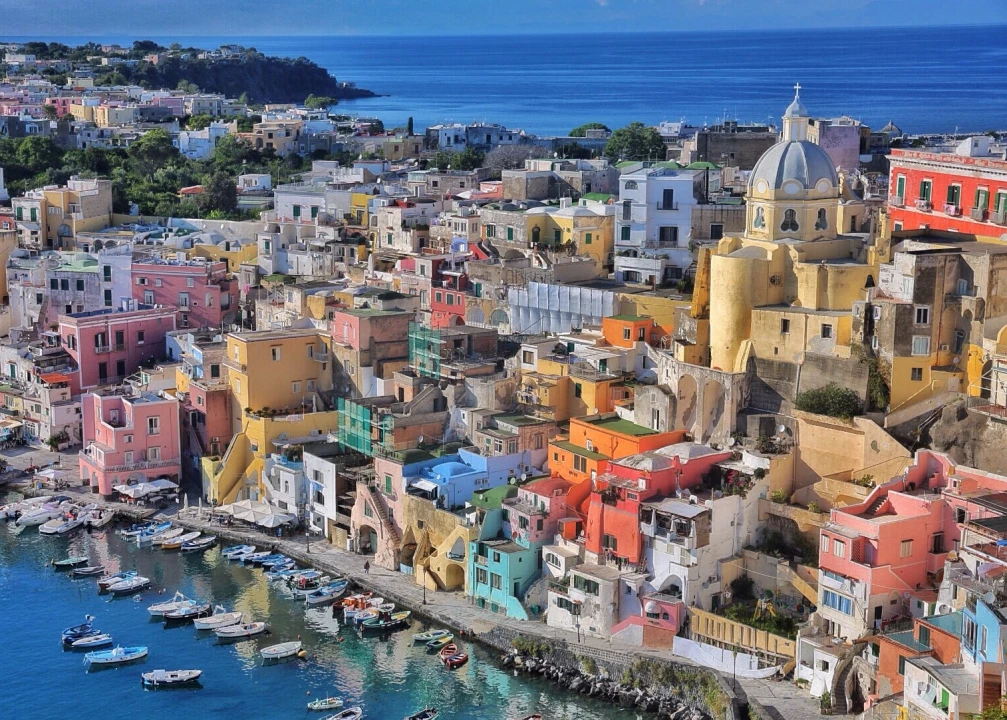 Procida, the smallest island in the Campanian Archipelago, has been chosen by renowned directors time and again as the ideal setting for several cinematic masterpieces. Of volcanic origin, Procida is also connected to the Island of Vivara by a narrow bridge. Not only is the sea an important trait of Procida, but also its narrow streets and churches, which somehow pair the tranquility of the beach, with walks through the town center to admire the architecture of centuries past: worth visiting in particular are the Abbey of San Michele Arcangelo, which had a central role in Procida's religious and cultural history. It rises on the Terra Murata Promontory, with the sea a steep drop below. Two beaches that visitors should make every effort to reach are the Beach at Pozzo Vecchio (a protagonist in scenes from the beloved film Il Postino) and Chiaiolella Beach (the Island’s most frequented).