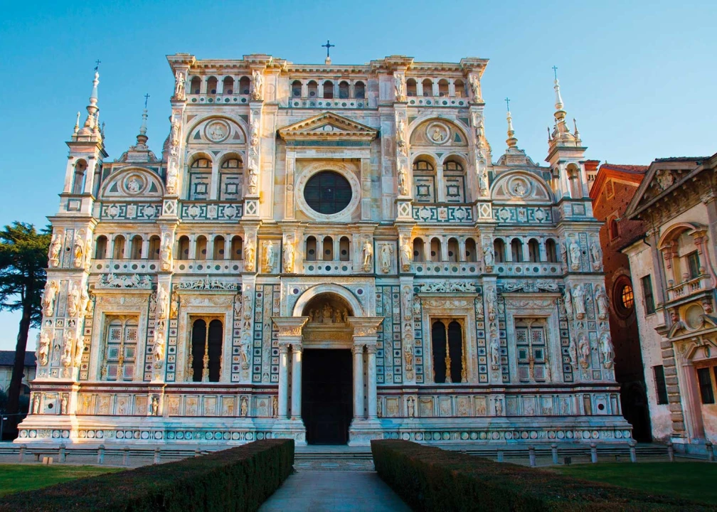 The monuments, the cobbled streets and house facades in a warm terracotta colour in the heart of Pavia’s historical centre give us glimpses of a glorious past as does the cathedral dedicated to Santo Stefano Martire (St. Stephen the Martyr) and Santa Maria Assunta (St. Mary of the Assumption). This important Renaissance building with a Greek cross plant and an octagonal dome holds the remains of San Siro. Other religious buildings include the Cathedral of San Pietro in Ciel d'Oro (St. Peter in the Golden Sky), founded by Lombards and rebuilt after the year 1000; the basilica of San Teodoro, the church of Santa Maria del Carmine, a fine example of Gothic Lombard architecture, and the Romanesque Basilica of San Michele Maggiore, in sandstone. The first stops among the historic buildings must be to the Visconti Castle which houses the prestigious Civic Museums and to the Ponte Coperto (Covered Bridge) that connects the historical centre with the district of Borgo Ticino, a quaint fishing village. The Malaspina, Bottigella, Orlandi and Mezzabarba palaces are well worth a visit as are also the eighteenth-century theatre Fraschini, the Botanical Gardens, with their beautiful greenhouses, and the area of the "Broletto" overlooking Piazza della Vittoria, surrounded by fourteenth century porticos. The town of Certosa of Pavia is not far away and here its magnificent and beautiful monastery can be admired.