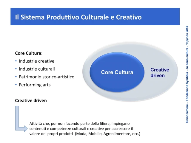 Io sono Cultura - with its numbers and stories, realized thanks to the precious contribution of about 40 leading personalities in the various sectors analyzed - plumbs and tells the hidden energies behind these results. We do that through an idea of culture naturally made up of museums, galleries, festivals, cultural heritage, literature, cinema, performing arts, but also of creative industries and Made in Italy: that is, all those productive activities that do not represent a cultural asset in themselves, but which derive their creative lymph and competitiveness from culture. So design, architecture and communication: creative industries that develop services for other sectors and convey content and innovation in the rest of the economy - from tourism to food and wine to manufacturing - giving rise to a hinge, a "hybrid area" in which lies creative-driven production, ranging from fashion to advanced manufacturing, in fact, to artistic craftsmanship.