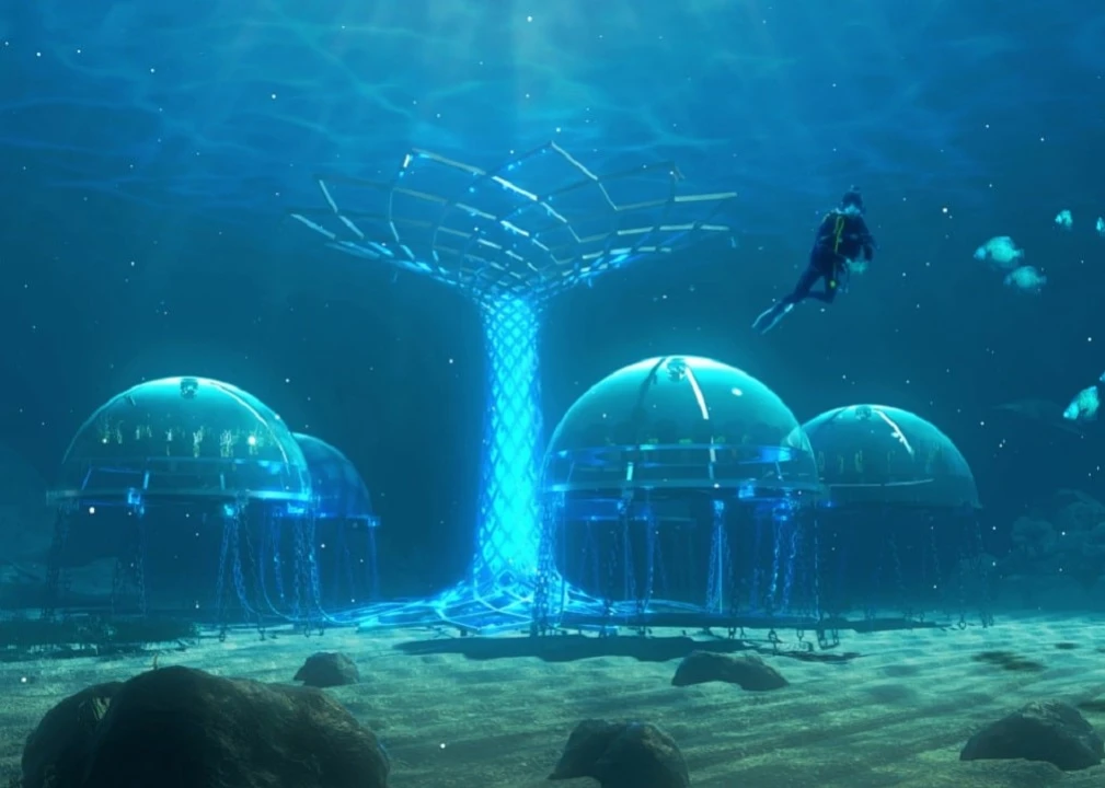 To date there are 6 biospheres in which 65 to 95 plants are housed on shelves placed inside, while the structures are anchored to the seabed by 28 chains to prevent their movement caused by sea currents.