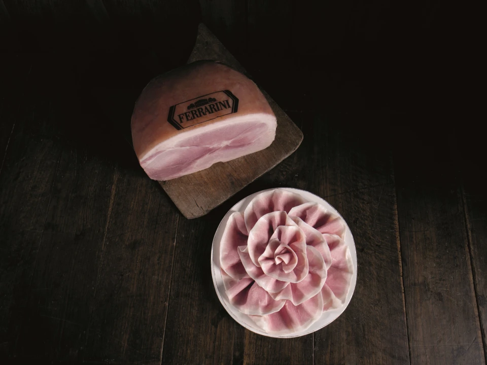 Ferrarini is historically renowned for its Prosciutto Cotto di Alta Qualità, which set a new industry standard when it became the first cooked ham in Italy to be produced without added polyphosphates. This groundbreaking decision, made in the 1960s, transformed Prosciutto Cotto from a lower-tier deli meat into a premium artisanal product, recognized for its purity, tenderness, and rich, delicate flavor.