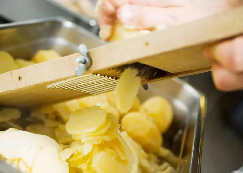 The mandolin knife is effective and safer than regular knives when chopping hard fruits and vegetables. Most cooks use this tool when preparing food that requires uniformly sliced pieces. The potato mandolin comes in handy when preparing homemade potato chips and crisps. You may also use the mandoline to prepare a wide range of salad and slaws.