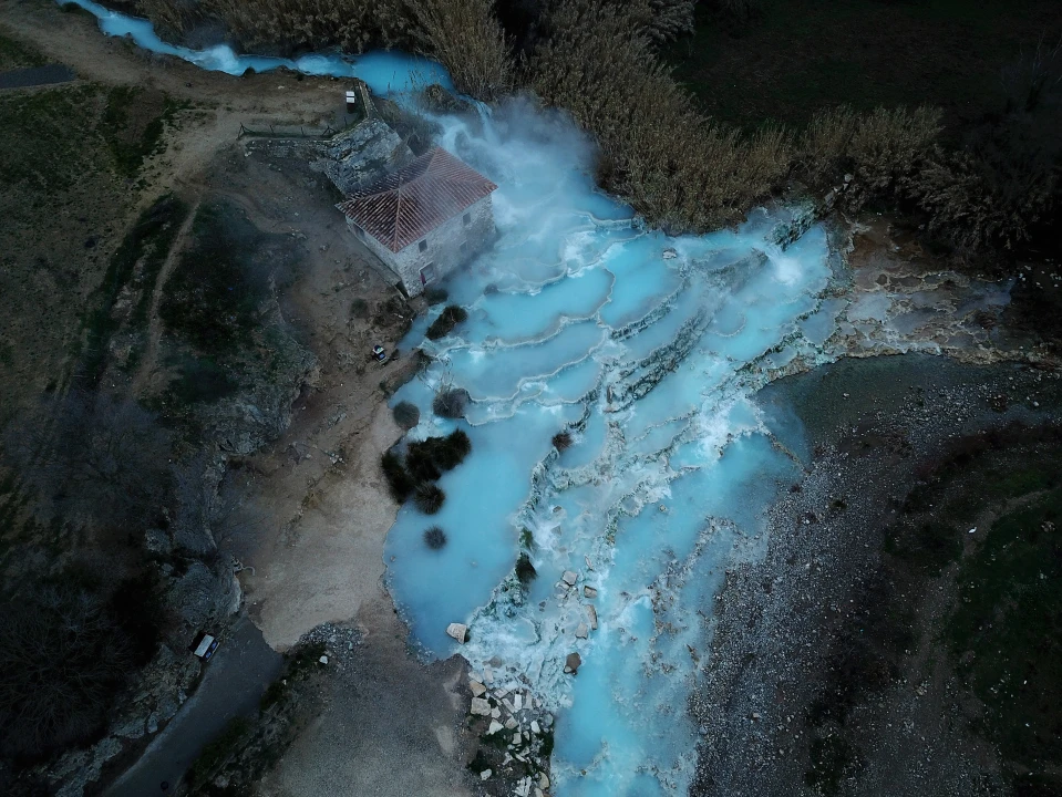 The springs of Saturnia spew approximately 800 liters of water per second. The water contains sulphur, carbonic acid, sulphate, alkaline bicarbonate, and mud. Also present are hydrogen sulphate gas, carbon dioxide and 2.79 grams of minerals.