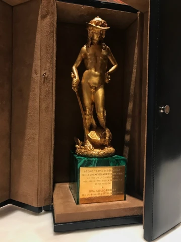 In 1956, the group had become the Academy of Italian Cinema and began to honor the best of each year’s Italian and foreign films. The Academy commissioned Bulgari to create the first gold David di Donatello statuette, awarding it to Gina Lollobrigida in 1956 for Best Actress for La donna più bella del mondo (released in the US as Beautiful but Dangerous). The audience was treated to a surprise look at the statute. Bulgari’s Monica Branetti, director of the jeweler’s heritage department and historical archive, had brought it to New York, on loan from Lollobrigida. In 1959, the award went to Marilyn Monroe. Detassis screened charming black and white footage of a news reel showing Monroe accepting the award in Italy.