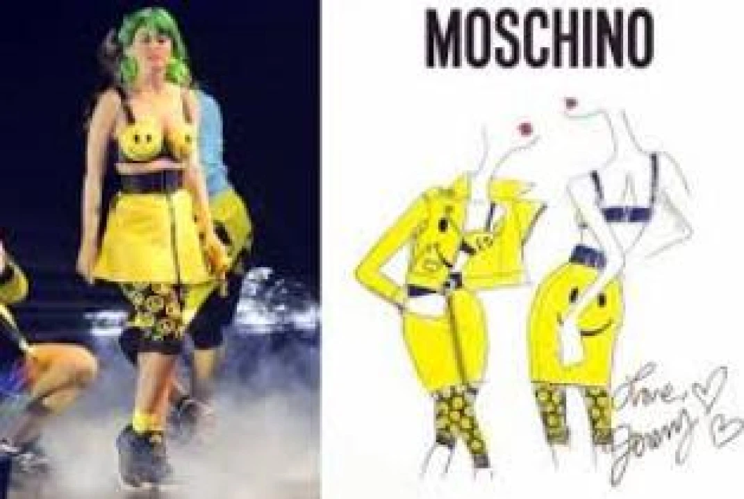 One of our favourite looks is a Jeremy Scott for Moschino '80s combo, featuring patterned leggings, a bold yellow emoji-printed jacket, skirt and bra top. It also seems Katy's developed a passion for Italian style as alongside the Moschino outfit, she's also unveiled looks from Valentino and Roberto Cavalli.