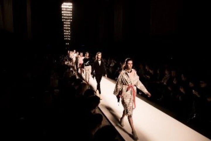 Laminated dresses, bomber jacket and overcoats come by the prestigious partnership between the designers and Alcantara, as well as sweatshirts with the original Muridae print - exclusively produced by the company - inspired by the controversial and surreal sculptures of Katharina Fritsch.