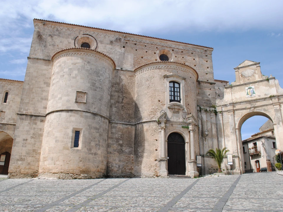 Proceeding along Roma Street you reach the “Bombarde” promenade. On the left there is a private house that was the old St. “Giacomo” hospital. Going along Roma Street and passing through the fifteenth-century gate “Del Sole” you reach “Del Tocco” square (tocco in Greek means assembly). Seven streets lead into the square and delimit seven blocks and palaces (on the left the Grimaldi-Serra palace, today the Town Hall). Entering Zaleuco Street, among palaces and magnificent portals, you reach the “Tribuna” square where the apsidal structure of the sumptuous Romanesque-Norman Cathedral stands. Consecrated in 1045, it has a basilican plan and was built partly on the rock and partly on a Greek cross Crypt, despite extensive repairs it is supposed to date back to VIII century. From the Cathedral, rather than going through the Bishops’ Arch, you can go along Caduti sul lavoro Street where you find the eighteenth-century church of the Sacred Heart and, immediately after, in the “Tre Chiese” square, you can see the monastery and the Gothic church of St. “Francesco d’ Assisi” (1252) and the XI century Greek-Orthodox church of St. “Giovannello” (St. Giovanni Crisostomo).