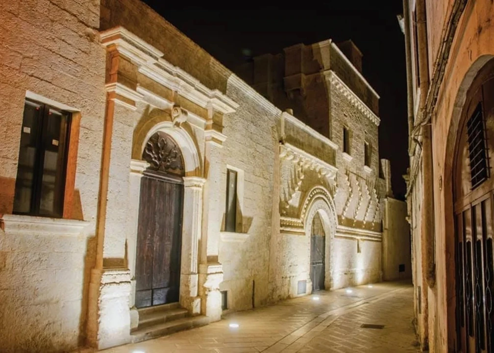 You can start your visit of the historical center from via Roma, where the municipal offices are housed in the convent of the Carmelite Fathers, finished in 1590. In the adjacent church of Madonna del Carmine (second half of the XVI century) the main altar carved in local leccese stone has columns, tunnels and basreliefs in late Baroque style and three paintings of Xavier Lillo which was a valid interpreter of the Neapolitan style in the eighteenth century in Salento.