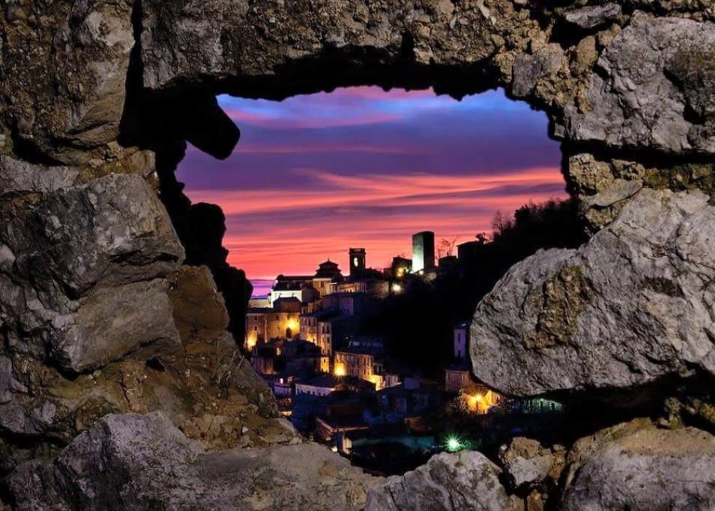 Inside this landscape, at 700 m. of altitude, the village is like a labyrinth of stone characterized by winding tiny and narrow streets, covered passages - spuort’ in local dialect, small squares, in a perfect medieval design that had defensive and climatic necessities (the tortuosity of the alleys breaks the impetus of freezing wind).