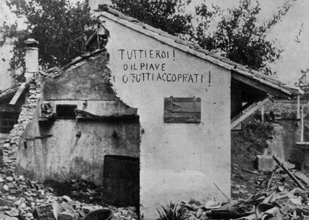 The events narrated in the song “La Leggenda del Piave,” one of the most important Italian patriotic songs, refer to the First World War and in particular to the period of November 1917. After the breakthrough by the Austrian army in Caporetto, the Italian troops stopped on the front line along the banks of the Piave river. The Austrian offensive began on June 15th, 1918, but was stopped by the Italian army at the battle of the Solstice on June 22nd. In these historic days the author of the song was at work in a post office and he wrote the first three stanzas on the service forms. The fourth and last stanza was written a few days after the end of the war.