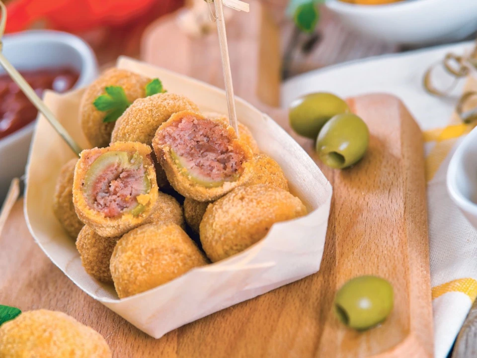 Although the stuffed olive in its current form dates to the 19th century, the story goes even deeper. Ascolana olives themselves - known as Ascolana Tenera - are an ancient variety, celebrated since Roman times and mentioned by authors like Cato, Martial and Petronius. Traditionally cured in brine with aromatic herbs, these plump, flavorful olives were preserved and loved long before they were ever stuffed and fried - a testament to centuries of culinary heritage.