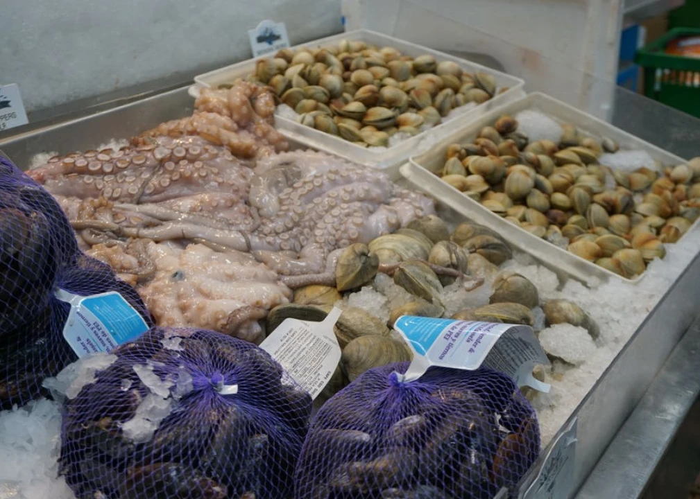 Met Food on Victory Boulevard had an extensive array of fish -- from filet to shellfish -- on display on Sunday. The dish isn't limited to just seven dishes -- many people use up to nine different dishes, including scungilli. Scungilli is a type of mollusk or snail that is a popular ingredient in the fish dishes.