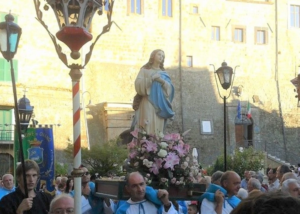 The feast of Our Lady of the Assumption of Onano is celebrated every year on the day of the Assumption, August 15. The morning of August 14 sees the children of the village parade with cookies hanging from their necks. Traditionally they have two shapes, pupe (in the shape of a female figure) and cavalli or cavalle (in the shape of horses and mares). Sometimes with the leftovers of the dough are also made other figures of various shapes (snakes, birds, etc..). The cookie today is produced by the ovens of the country, with some rare exceptions, while in the past was made regularly at home. During the procession of the Assumption, the cookies are carried by the children of the country hung around their necks with a red ribbon and consumed at the end of the procession by the children themselves. The males carry in procession the mares, the females carry the pupae.