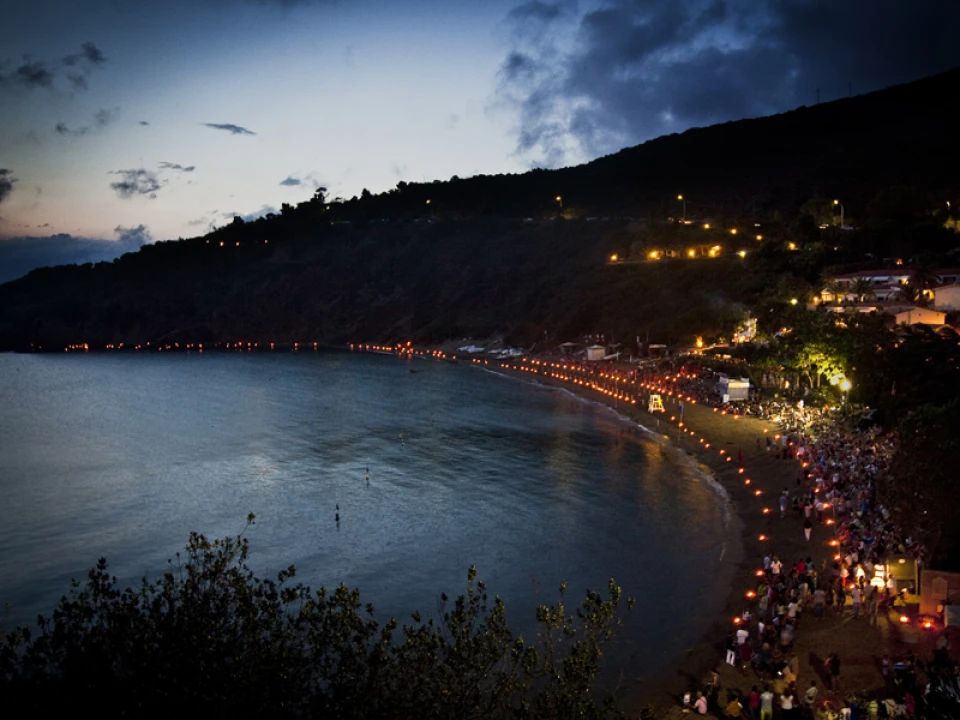Today the commemoration of Innamorata's Legend starts with a traditional costume parade, a torchlight procession illuminates the lanes of Capoliveri and animated by drums that keep the march rhythm. After that, the procession moves through some free shuttle bus to Innamorata beach, already lit on shore by hundreds of torches. An act of the legend is represented by the beach: upon a rock the young Maria is waiting for her time to drop herself among the waves removing from her shoulders the shawl (ciarpa). After the performance of Maria, the shawl is disputed in a rowing challenge through a mixed track starting from the beach. The winner boat is then entitled to the shawl's recovery; after, on the crowded beach, the winner crew is awarded while the young Mary is rescued and greeted by big applauses. The festival continues with a wonderful fireworks show played on water and a feast prepared at a restaurant next to the beach where the evening follows with good music and fun.