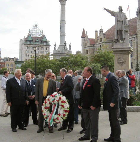 The Columbus Day Association of Lackawanna County lays a wreath at the statue of Christopher Columbus on Scranton’s Courthouse Square. That statue was actually sculpted in the yard of Frank Carlucci, who was responsible for the creation of the grand staircase at Ellis Island. Legend has it that his front yard in Scranton served as the studio for the creation of the statue, so you would see the arms and legs of the statue being formed. Every time I pass where Mr. Carlucci lived, I think about this story and it amazes me to think that his front yard was his studio.