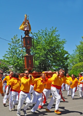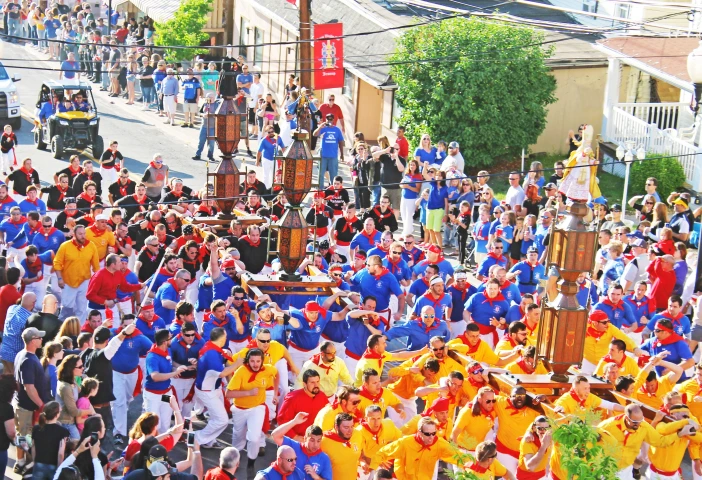 Abbiamo un'intera estate di festival italiani, che iniziano con il fine settimana della Memorial Day a maggio e terminano dopo il Labor Day a settembre. L'estate dei festival italiani qui prende il via con La Corsa dei Ceri a Jessup. Questo festival è una delle celebrazioni più grandi e tradizionali della zona. La foto della copertina del mio libro raffigura proprio la statua di San Giorgio portata durante la Corsa dei Ceri. È una cosa molto bella da vedere di persona. Un gruppo di Gubbio viene ogni anno a Jessup per la Corsa dei Ceri, e un gruppo di persone di Jessup si reca a Gubbio per partecipare al loro evento.