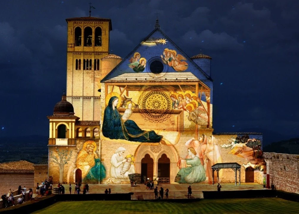 The Italian town of Assisi, in the central Umbria region, will project images of Giotto's Nativity frescoes onto the façade of the Basilica of St Francis over the Christmas season. The video-mapping project, which was hugely popular last year, will see Giotto's Nativity scenes beamed onto the exterior of the Basilica di S. Francesco, dedicated to Italy's patron saint, as well as on other landmarks around the pilgrimage town.