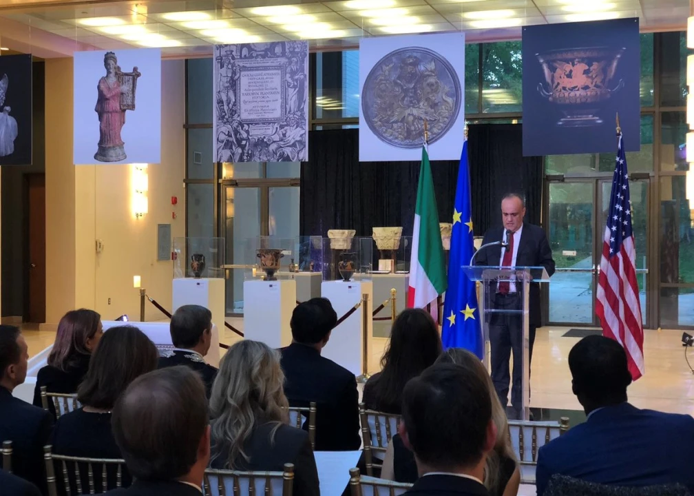 “What we are seeing here is a small part of the results of that cooperation, but no less significant in that they exemplify the shared culture that unites Italy and the US,” he added. Remarks were followed by the Repatriation Ceremony of three artifacts and by an exhibition of 20 works of art recovered in the last two years by the Carabinieri Heritage Protection Unit in collaboration with the FBI and ICE.