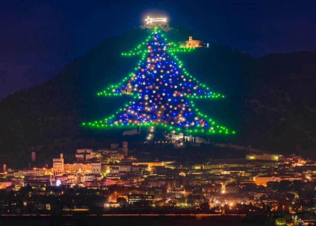 Each year people 'adopt' a light from the world-famous Christmas tree display in central Italy. The 'world's largest Christmas tree' is lit up each year on the slopes of Monte Ingino, overlooking the mediaeval town of Gubbio in Italy's central Umbria region.