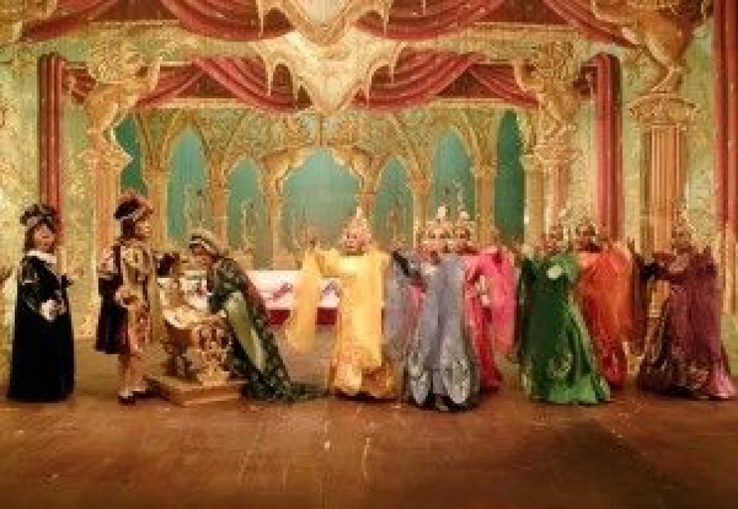 Fantastic visions unfold showing visual movement that no book of fairy tales has ever contained, such as a luxuriant forest that rises up to protect Sleeping Beauty's world. Dozens of intricate puppets and settings will make theatre-goers of all ages delight in the vast and lush landscape of this colorful and spectacular rendition. This is a rare opportunity for the whole family to experience the stunning vistas of the lost art of marionette theatre.