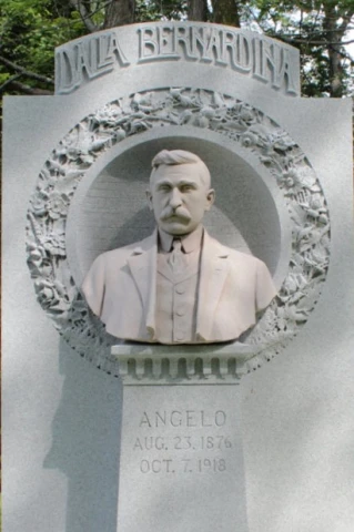 Perhaps one of the most important and representative Italian places is Hope Cemetery located in Barre. Strolling through the cemetery, it’s impossible not to notice the gradual refinement of granite tombs over the course of the 20th century. The earliest gravestones are rough and weathered, as though the earth had coughed them from the ground. Many stonecutters died performing their craft, having succumbed to the "American disease" silicosis. Because the climate in Italy was milder, workers labored in sheds with open sides, naturally ventilating the area, allowing the fine dust to escape. One such stonecutter, Louis Brusa, died in 1937 at age 50 from silicosis. His monument is one of the most unusual (and disturbing) in Hope Cemetery. Brusa is shown exhausted and slumped backward with his wife Mary comforting him. His chest is merged into the granite base symbolic of his lungs filled with granite dust. Looking around, the names on the tombstones conjure far-away places: Columbo, Benvenuti, Peduzzi, Corti, and more. More than a few are engraved in Italian: Nata Novembre 1872, Morta Febbraio 1936. There are prominent mausoleums where generations of Italian families are buried side by side, close in death as in life.