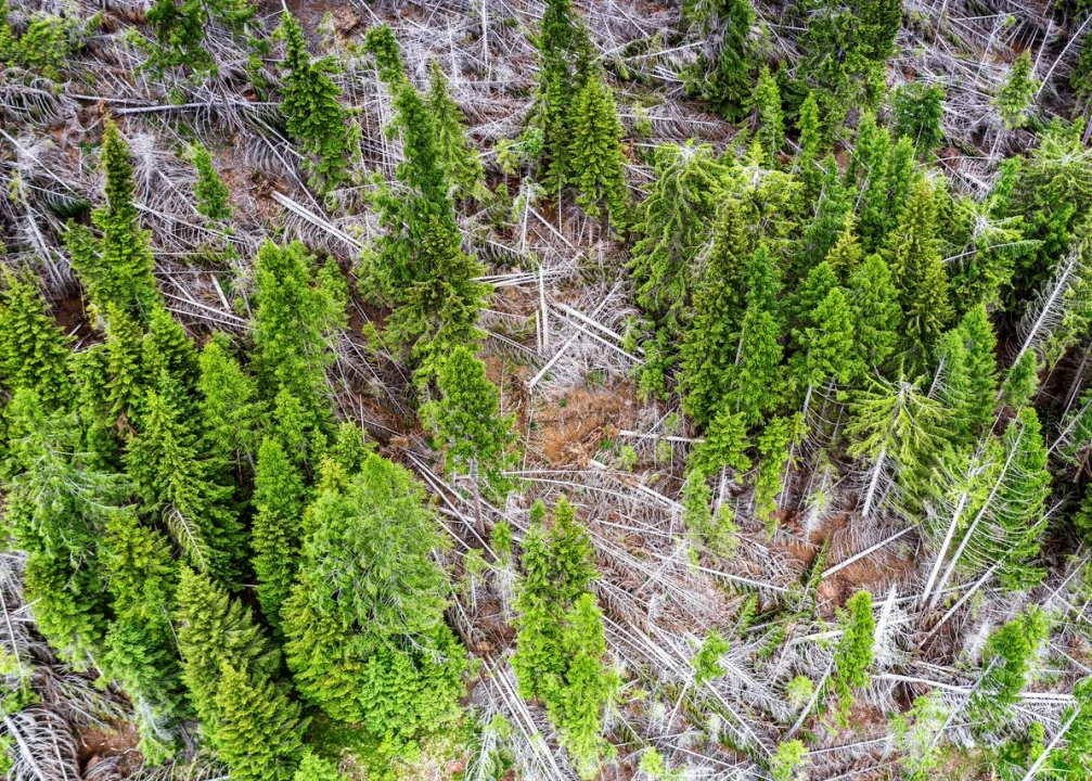 AT THE EDGE OF THE road there is a heap of about 200 spruce logs, each approximately 30 feet long, all felled by a recent, severe winter storm. It’s late spring, but the wood is still covered with a dusting of snow.
