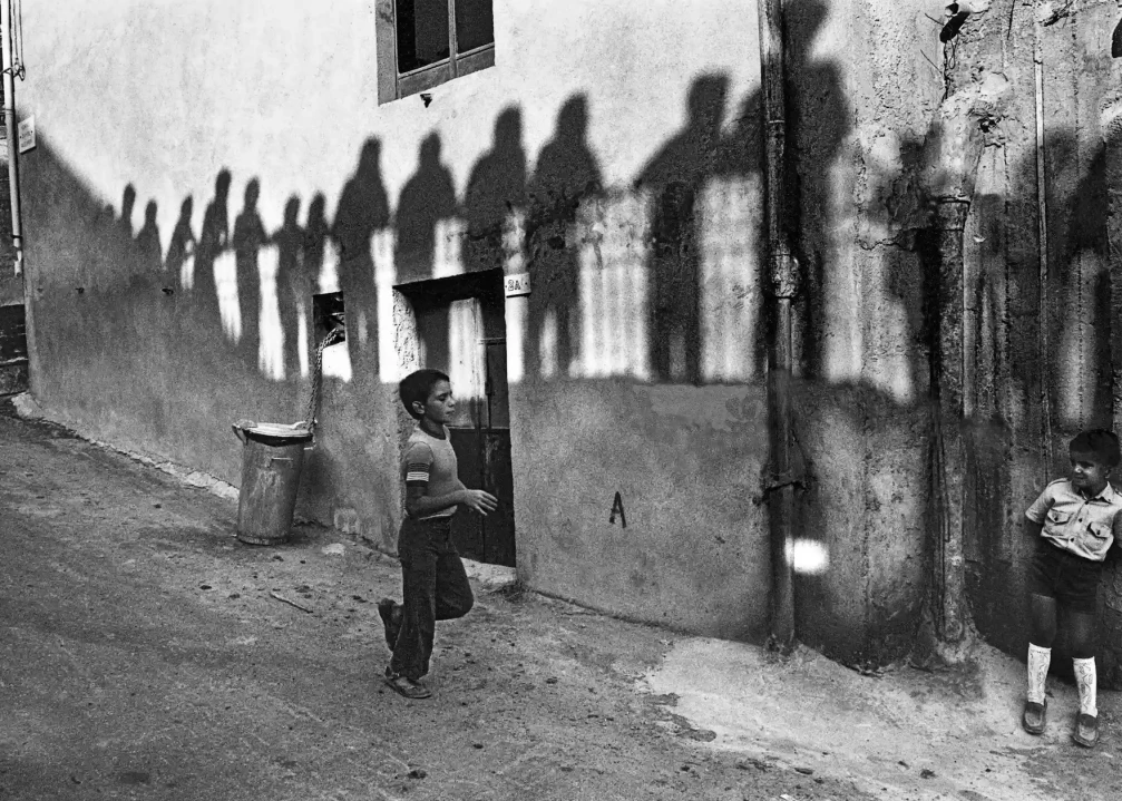 “I tell them the most obvious thing: photograph what you love and what you hate. But they should tell me how to sneak around in this weird era that I do not really know.” Scianna has taken more than a million photographs and, in his words, the good shots number about 50, including the series on the Roma photographed in the late 90s; the portraits of writers; and one of his most famous photos, a boy running through Capizzi, a small Sicilian village, shadows imprinted on a wall behind him.