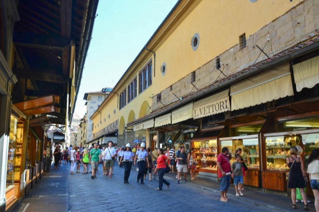 In Florence, Ponte Vecchio and its jewelry shops are a milestone for all visitors. This ancient crossing is located in the heart of the historic center and is closed to cars, but still very busy with pedestrians. Not only do the goldsmiths' shops exert great charm, but also the particular architecture of this bridge adds charm, making it a place where it is nice to walk, even for those who do not intend to do luxury shopping.