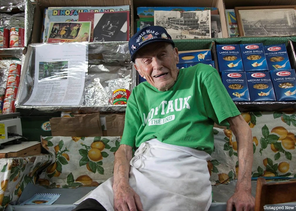 Cortese is a World War II veteran who served in the invasion of Normandy and the Battle of the Bulge as part of the 551st Field Artillery Battalion. Cortese’s grandfather opened Golden Gate Fancy Fruits at 2080 Flatbush Avenue in 1939 and until the coronavirus crisis, Cortese was still manning it. Inside, the shop looks just like it did eighty years ago and when we entered, Cortese smiled at us and said “You’ve just stepped into 1939.”